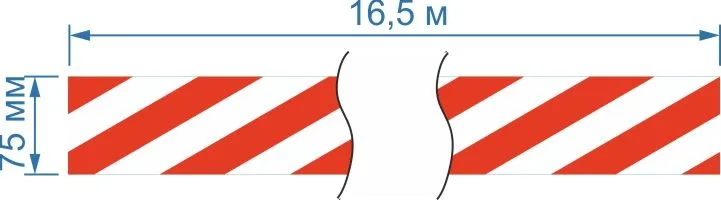 Опознавательная маркировочная лента красно-белая наклонная 75мм x 16,5мКод: ЦБ-00022851