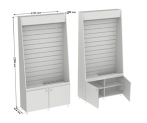 ГАССТЕНД цвет серый, экономпанель с пластиковыми вставками, 2 двери ГС01-02 (434х2200х1232; ЛДСП) ГАССТЕНД комплектуется комплектом крючков, карманом А4 и фризом по желанию заказчика.С этим товаром также покупают