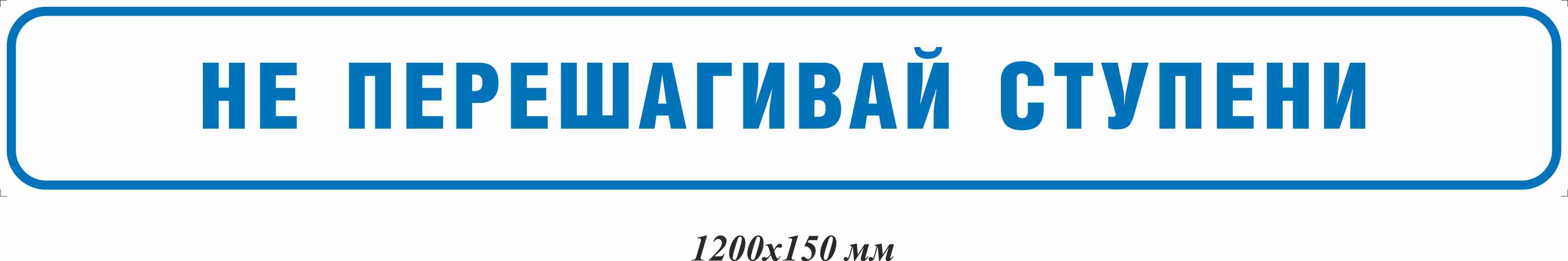 Наклейка информационная на ступени Не перешагивай ступени 1200х150 мм, материал пленка ПВХ самоклеящаяся, форма прямоугольная края закругленные, цвет белый/синийАрт. IT-1200x150-PS1