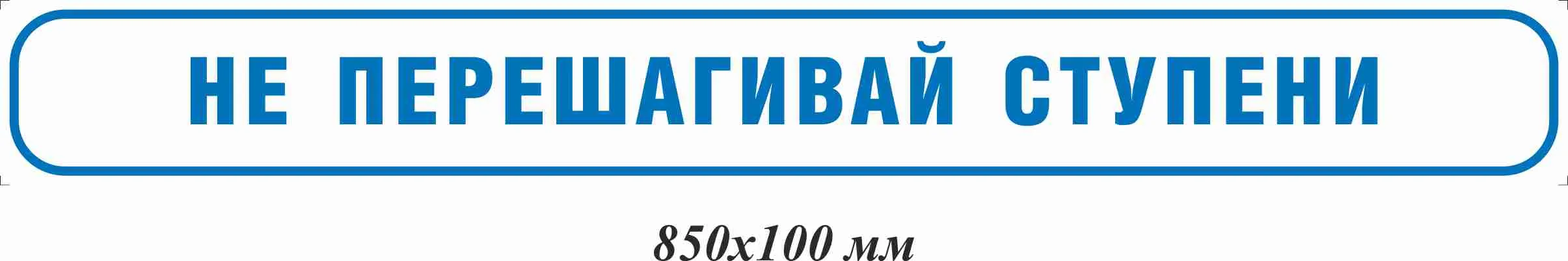 Наклейка информационная на ступени Не перешагивай ступени 850х100 мм, материал пленка ПВХ самоклеящаяся, форма прямоугольная края закругленные, цвет белый/синийАрт. IT-850x100-PS1