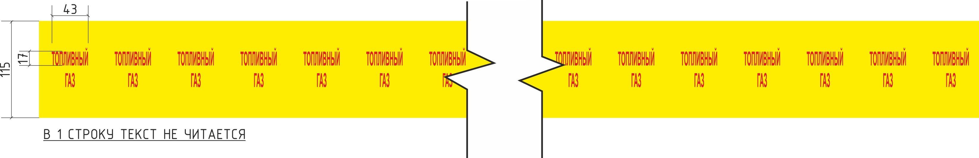Лента маркировочная Газ низкого давления, 115 мм х 20 м, 43 мм, цвет фона желтый
