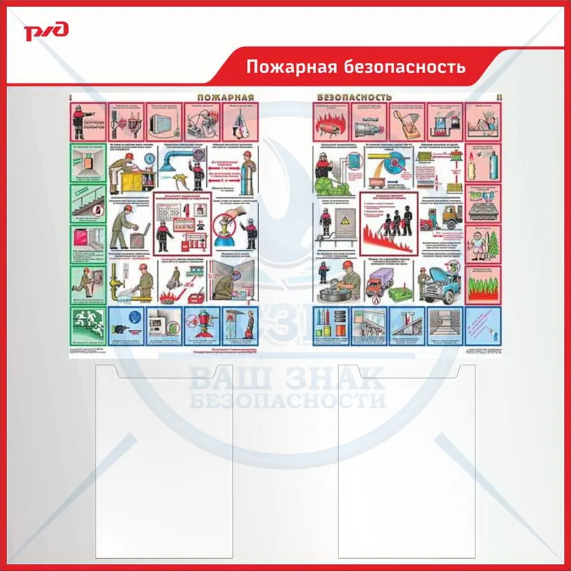 Стенд Умей действовать при пожаре, Логотип (1400х1200; Пластик ПВХ 4 мм; Алюминиевый профиль), Карман плоский 210х297-2шт, Плакаты А3 Соуэло - 4шт, Перекидная система А4 на 5 рамок-1шт