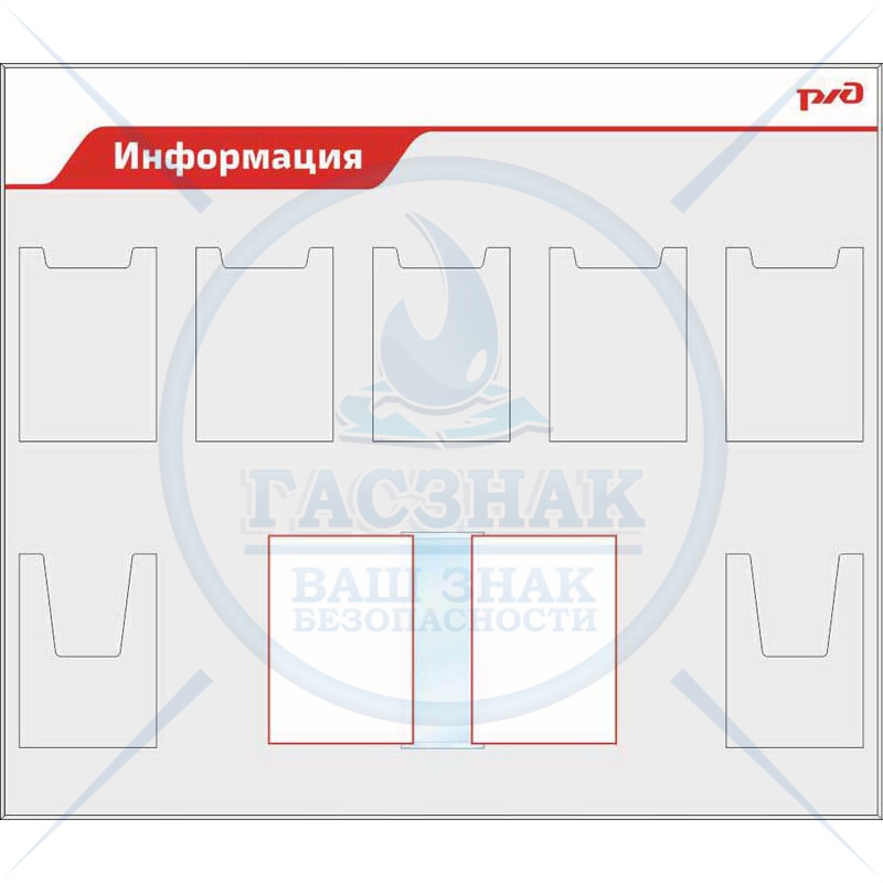 Стенд Безопасность движения РЖД, 3 гориз. кармана А4, 10 карманов А4, 4 объемных кармана А4 (1600х1500; Пластик ПВХ 4 мм, алюминиевый профиль; )