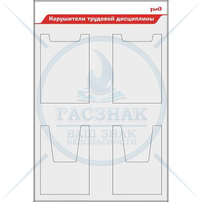 Стенд Система управления профессиональными рисками (6 вертикальных плоских карманов А4) (750х1000; Пластик) С подписанными кармашками (750х1000; Пластик ПВХ 4 мм; )