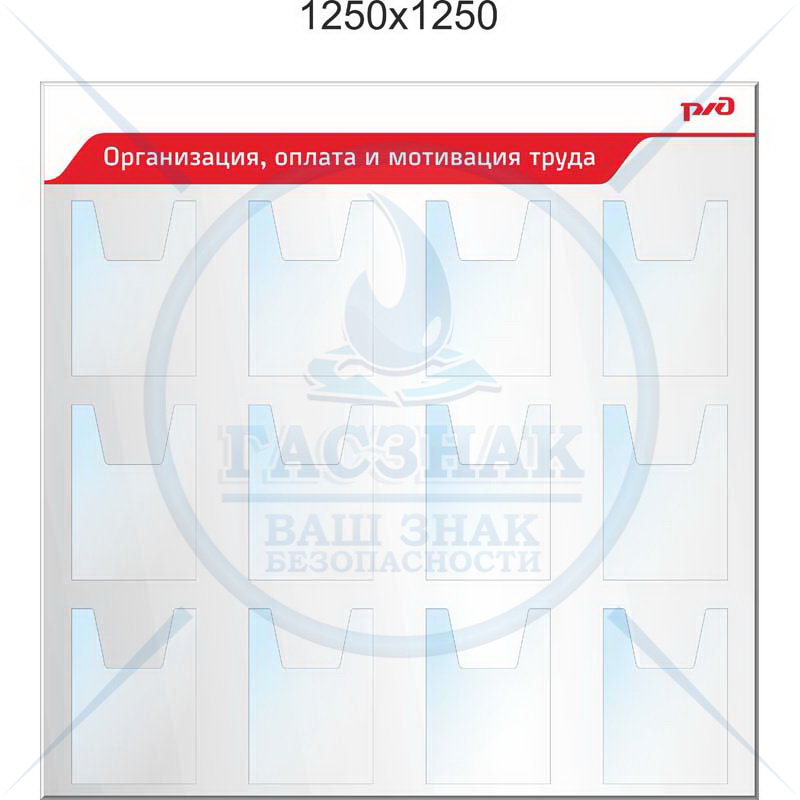 Стенд День качества РЖД, 3 объемных кармана А4, 1 горизонт. Карман А4, Перекидная система на 6 ячеек, ящик для предложений (1200х1100; Пластик ПВХ 4 мм, алюминиевый профиль; )