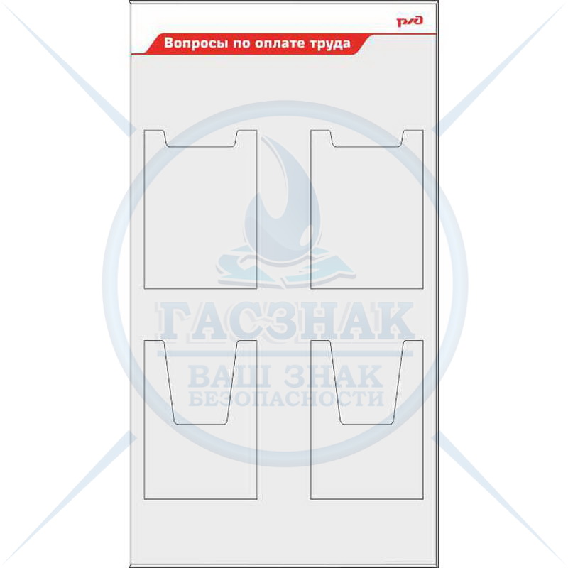 Стенды по охране труда для ОАО РЖД, пластиковый с алюминивым профилем, 5 объёмных карманов А4,1 карман А3 (Пластик ПВХ 4 мм; 1000х1000)