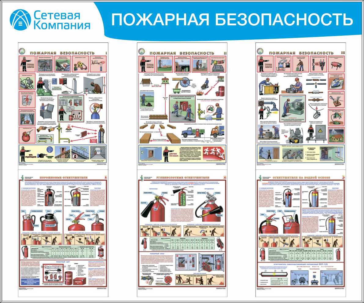 Стенд для ОТ пожарная безопасность, 6 плакатов А3 (1 200х1 000; Пластик ПВХ 4 мм, Алюминиевый профиль)