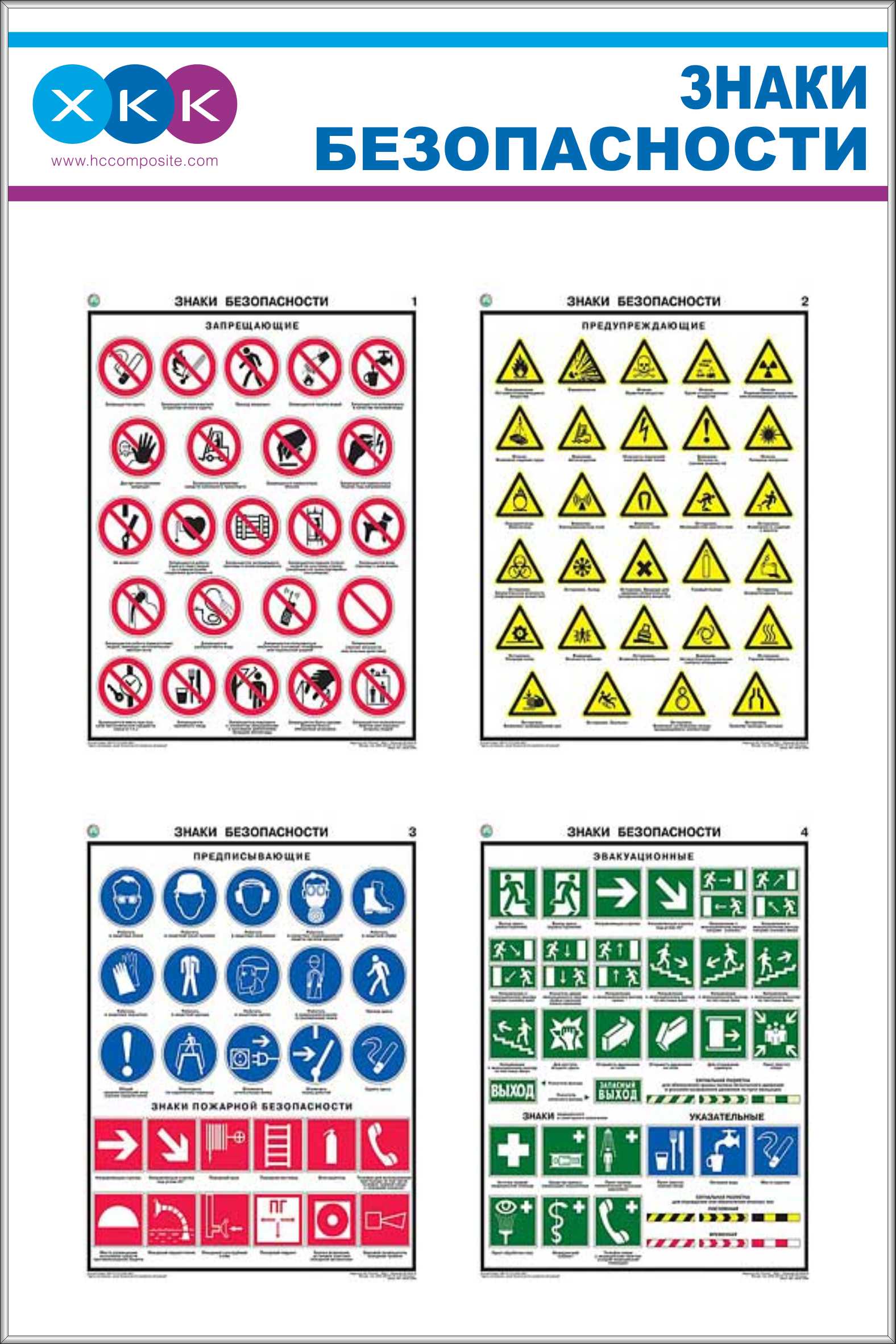 Стенд Знаки безопасности (4 плаката А3 соуэло), логотип (800х1200; Пластик ПВХ 4 мм, алюминиевый профиль; )