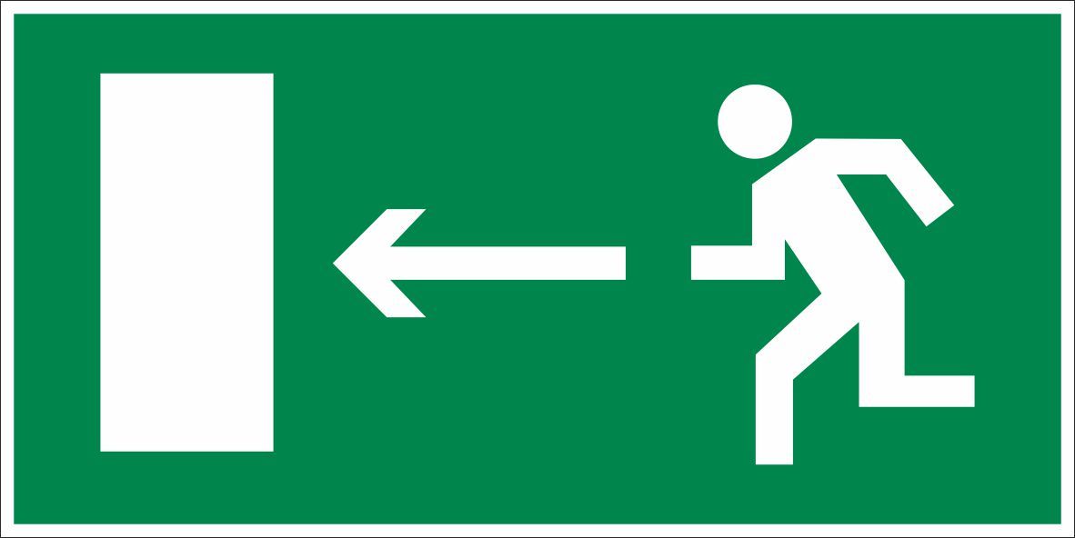 Знак безопасности E04 Направление к эвакуационному выходу налево (300x150, Плёнка фотолюминесцентная ГОСТ 2018)