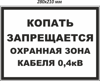 На нашем сайте можно купить Копать запрещается. Охранная зона кабеля 0,4кВ по доступной цене. Предусмотрена доставка заказов в Петропавловске-Камчатском.